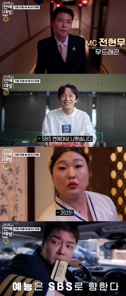 ‘2025 SBS 연예대상’의 3MC 전현무, 차태현, 이수지가 이번엔 APEC 패러디 티저로 뭉쳤다. 지난해 가수 지드래곤의 뮤직비디오를 패러디한 ‘무드래곤 티저’로 큰 화제를 모았던 ‘SBS 연예대상’은 올해의 이슈 중 하나였던 APEC 정상회의 홍보 영상을 패러디한 티저로 또 한 번 주목받고 있다.