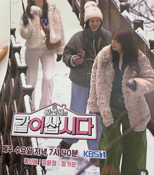 7일 황신혜는 이날 첫 방영하는 KBS1TV 예능 '황신혜의 같이 삽시다' 촬영장과 홍보 사진을 함께 올렸다. 황신혜와 정가은 그리고 장윤정은 끊임없는 미소로 촬영장 분위기를 느끼게 했다.