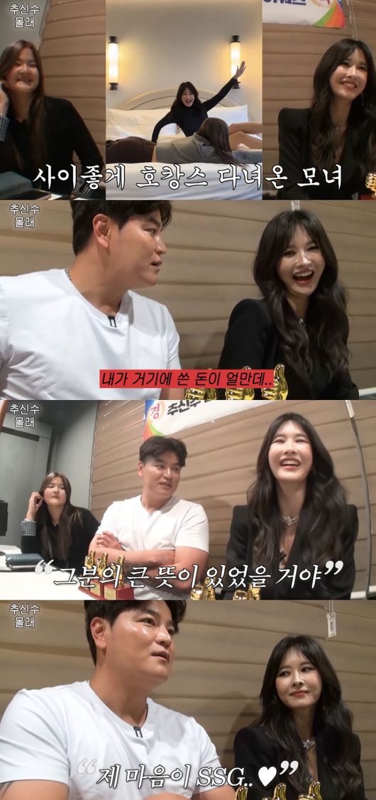 제작진이 “혜택을 엄청 받으시네”라며 감탄하자 추신수는 “저희 그룹에서 조선 팰XX 호텔이 SSG거 아니냐. 내가 거기에 쓴 돈이 얼마인데”라고 받아쳤다.