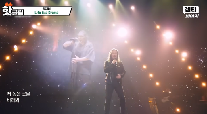 임재범은 같은 날 발매된 신곡 ‘라이프 이즈 어 드라마(Life is a Drama)’를 라이브로 선보였다. 무대 중앙에 홀로 선 그는 절제된 호흡으로 곡의 서사를 끌고 갔고, 특유의 거칠면서도 깊은 허스키 보이스로 감정을 차곡차곡 쌓아 올렸다. 담담하게 시작해 후반으로 갈수록 격정적으로 치닫는 흐름을 흔들림 없이 소화하며 ‘가왕’이라는 수식어를 다시 확인시켰다.