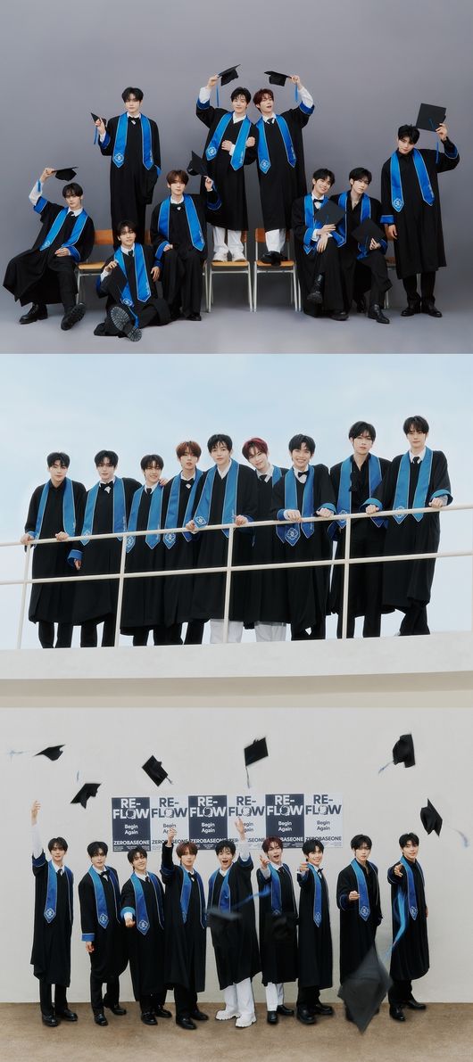 '비긴 어게인(Begin Again)'이라는 이름으로 공개된 사진에는 졸업 가운을 착용한 제로베이스원의 모습이 담겼다. 아홉 멤버들은 자유롭고 경쾌한 분위기 속에서 역동적인 포즈와 장난스러운 제스처를 취하며, 자연스러운 에너지를 전했다.