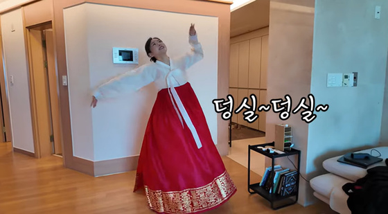 공개된 영상에서 김다영은 남편 배성재와 함께 한복을 차려입고 양가를 방문했다. 그는 아침에 일어나 남편의 한복과 자신의 것을 다리며 옷을 차려입을 준비를 했다. 그 과정에서 옷을 갈아입는 장면이 공개됐는데, 한복 치마 위로 탄탄한 등 근육이 이어지며 눈길을 끌었다.