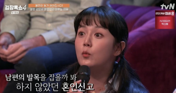 13일 방송된 tvN Joy 예능 김창옥쇼4에서는 ‘불편한 동거, 헤어집시다’라는 주제로 다양한 사연이 소개됐다. 이날 강은비는 남편 변준필과 함께 사연자로 출연해, 결혼 생활 속에서 겪고 있는 솔직한 고민을 밝혔다.