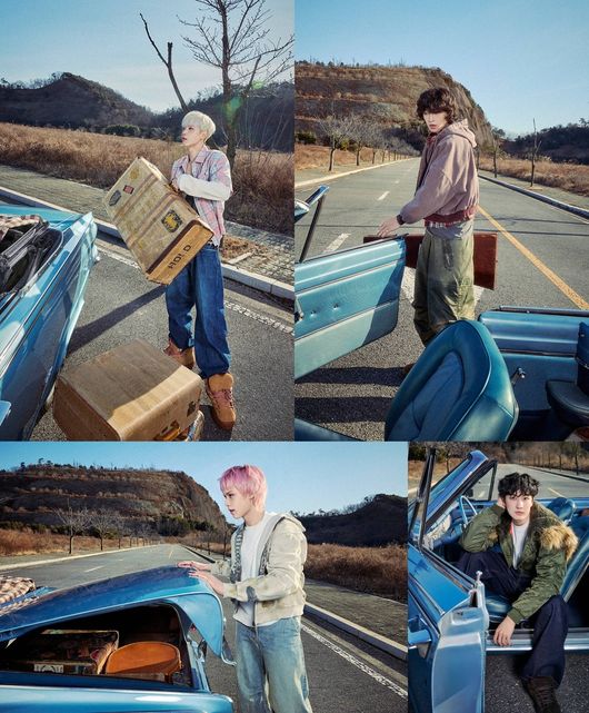 공개된 사진 속 AxMxP는 탁 트인 도로를 배경으로 빈티지한 오픈카와 여행 가방, 카메라 등 소품을 활용해 마치 여행을 떠난 듯한 설렘과 즐거운 분위기를 전한다. 특히 서로 어깨를 기댄 채 환하게 웃고 있는 멤버들의 모습은 청량한 소년미를 자아내며, 장난기 넘치면서도 자유분방한 매력을 돋보이게 만든다.