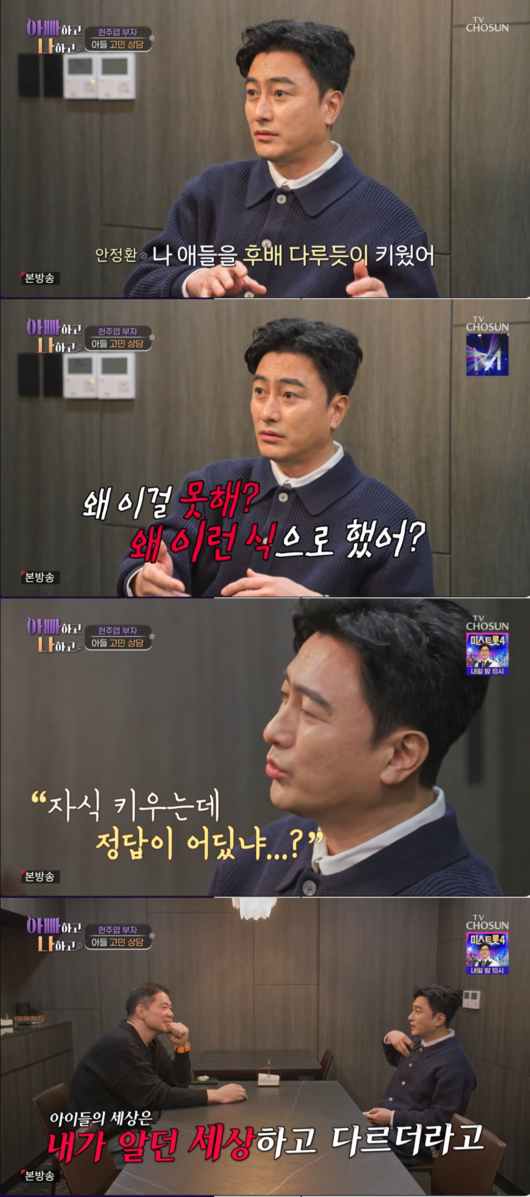 이어 안정환은 자신의 육아 방식에 대해서도 솔직하게 고백하며 참회했다. 그는 “나도 애들을 후배 다루듯이 키웠다”며 과거 운동부식의 강압적인 교육 방식을 적용했던 사실을 털어놓았다. 안정환은 “강압적으로 키우려다 보니 아이들과 멀어지게 됐다”며 “나도 지금도 (자식이) 어렵다. 아이들의 세상은 내가 알던 세상과 너무 다르더라”고 말해 시청자들의 눈길을 끌었다.