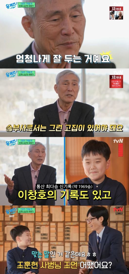 [OSEN=박하영 기자] ‘유퀴즈’ 깜짝 출연한 조훈현이 유하준을 극찬했다.