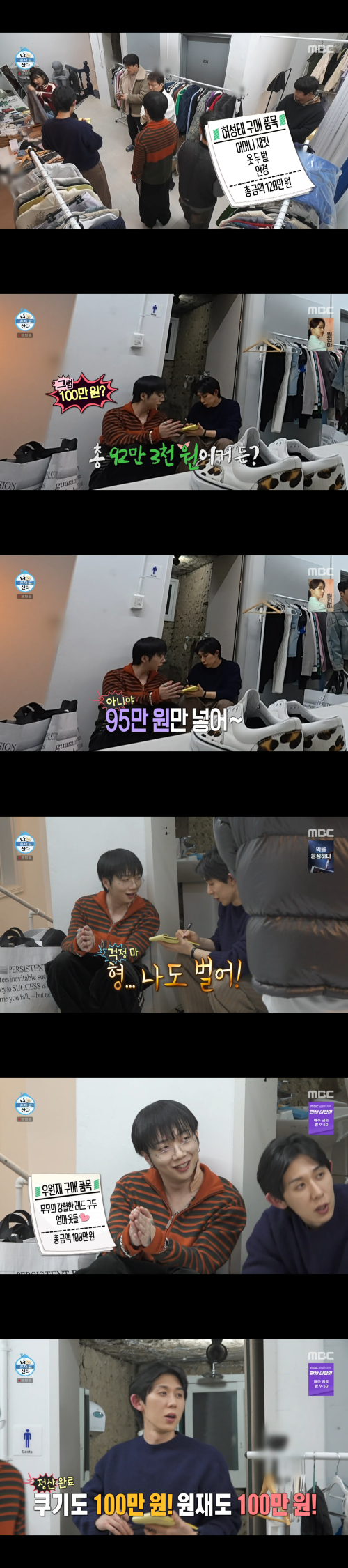 우원재가 이날 구입한 물건의 총액은 92만 3천 원. 이를 본 코드 쿤스트가 “95만 원 넣어”라고 말하자, 우원재는 “형, 나도 벌어”라며 쿨하게 100만 원을 입금해 통 큰 면모를 보였다. 함께 방문한 래퍼 쿠기 역시 100만 원을 기부하며 바자회 분위기를 달궜다.