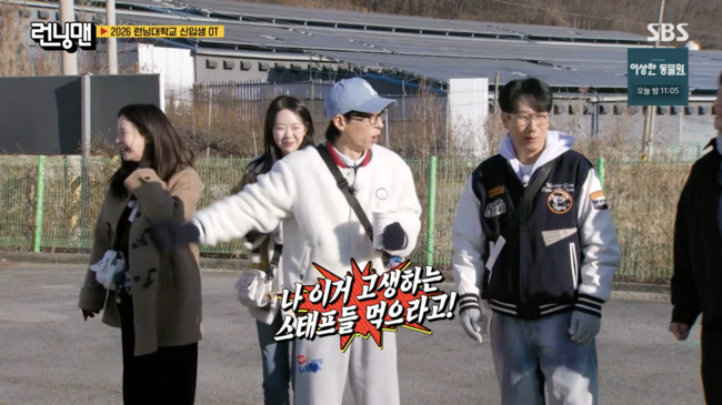 18일 방송된 SBS ‘런닝맨’은 ‘2026 운수좋은 OT날’ 레이스를 꾸며져 런닝대학교 26학번 신입생이 된 멤버들과 게스트 권은비의 모습이 전파를 탔다.