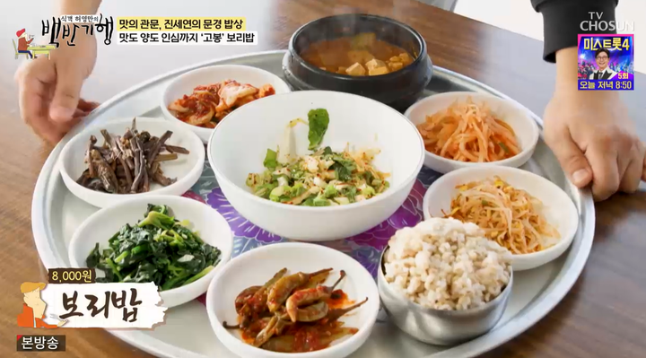 진세연은 한상 가득 차려진 보리밥 정식이 단돈 8천원이란 이야기를 듣고 깜짝 놀랐다.