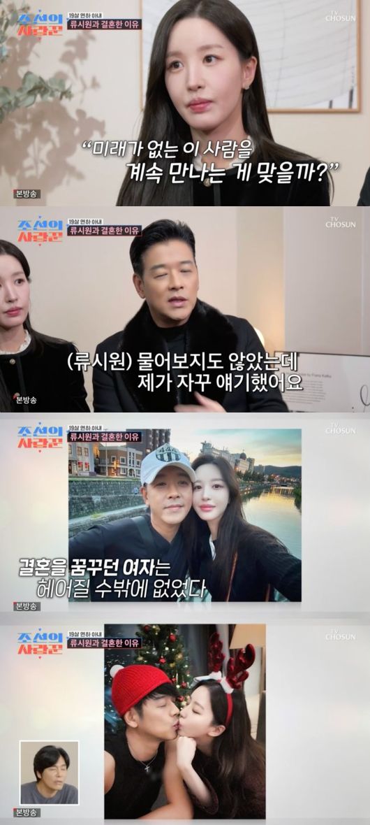 류시원과 아내가 처음 만났을 대 나이는 각각 44세, 25세였다. 류시원은 “그때는 결혼 이런 게 아니었고, 조심스럽게 연애할 때였다. 그러다가 한 번 헤어졌다. 3년이 지나서 다시 만났다”라고 아내와 결혼까지 하게 된 과정을 공개했다.