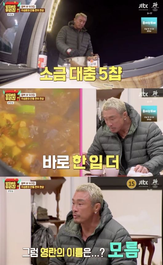 추성훈은 남다른 칼 솜씨와 요리 실력으로 모두를 놀라게 했다. 계량 없이 툭툭 넣는 추성훈의 모습을 본 하지원은 “비법이 있나 보다”라며 궁금해하는 모습을 보였다. 추성훈이 만든 양념을 맛 본 하지원은 “맛있다”라고 깜짝 놀랐으며 장영란은 “양념 잘 하시네. 음식을 진짜 잘하신다”라고 칭찬했다.