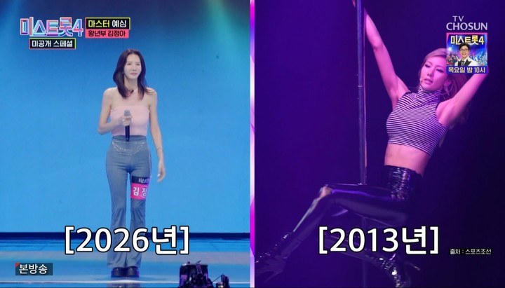 20일 방송된 TV CHOSUN ''미스트롯4' 미공개 스페셜'에서는 애프터스쿨 출신 김정아의 무대가 공개됐다.