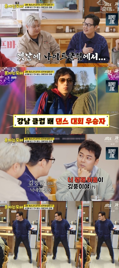 김풍이 "그때 닉네임을 정해서 (댄스 대회) 무대에 올라가야 했다. 담당 웨이터 형한테 '나 닉네임 뭐 해야 하냐?' 물어보니까, '너 '순풍산부인과' 좋아하잖아, 김풍 해' 하더라. '김풍 너무 좋은데?' 그렇게 올라가서 춤췄다"라고 전해 놀라움을 더했다.