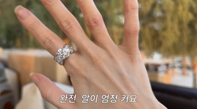 이후 퓨어디는 받은 반지를 자랑하며 “남편이 줬다. 완전 알이 엄청 크다. 대박이다. 빛나는 것 봐”라며 몇 캐럿인지 짐작이 되지 않는 다이아몬드 반지를 공개해 눈길을 끌었다. /kangsj@osen.co.kr