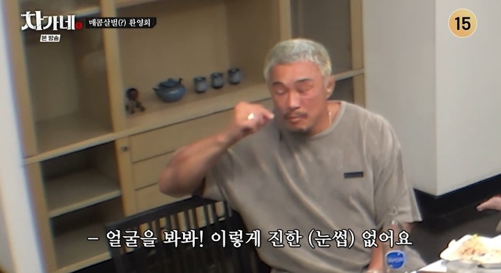 딘딘은 그러면서 "사실 모두 무서웠다. 야쿠자로 오해할 수 있겠다"라며 범상치 않은 분위기를 풍기는 차승원과 추성훈의 비주얼을 지적했다. 그러자 추성훈은 차승원을 가리키며 "무서웠어 형. 형 얼굴이"라며 "얼굴 봐바 이렇게 진한 눈썹이 없다"라고 공격했다. 그러자 차승원은 당황하며 "야 너가 더 무서워"라고 반격했다.