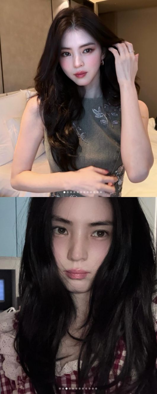 공개된 사진 속 한소희는 전신 거울 앞에서 라인이 드러나는 원피스를 입고 포즈를 취하고 있다. 은은한 카키 톤의 원피스는 군살 하나 없는 허리 라인과 길게 뻗은 자태를 강조했다. 이외에도 한소희는 화사한 민낯부터 화보 촬영을 하는 등 다채로운 일상을 전했다.