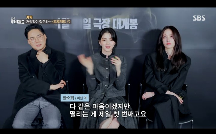 24일 방송된 SBS ‘접속! 무비월드’에서는 지난 21일 개봉한 범죄오락영화 ‘프로젝트 Y’의 주역 한소희, 전종서 그리고 이환 감독의 인터뷰가 공개됐다.