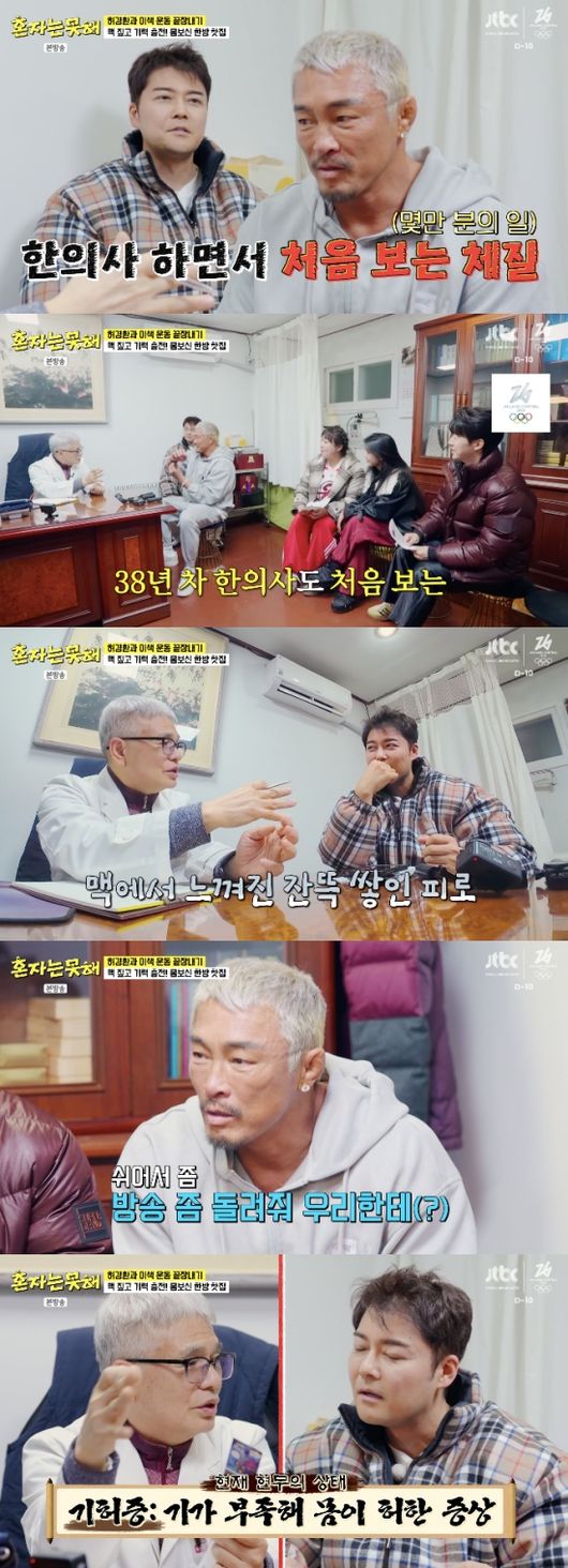 한의사는 전현무의 맥을 짚었다. 한의사는 “맥이 굉장히 지쳐 있다. 피곤이 쌓여 있다”라고 말했다. 이어 “휴식이 좀 필요할 것 같다”라고 조언했다. 추성훈은 “방송 좀 쉬고 우리한테 돌려줘라”라고 너스레를 떨었다. 한의사는 “기허증이다. 기운이 없다는 것이다. 면역 기능이 떨어져 있다”라고 말했다.