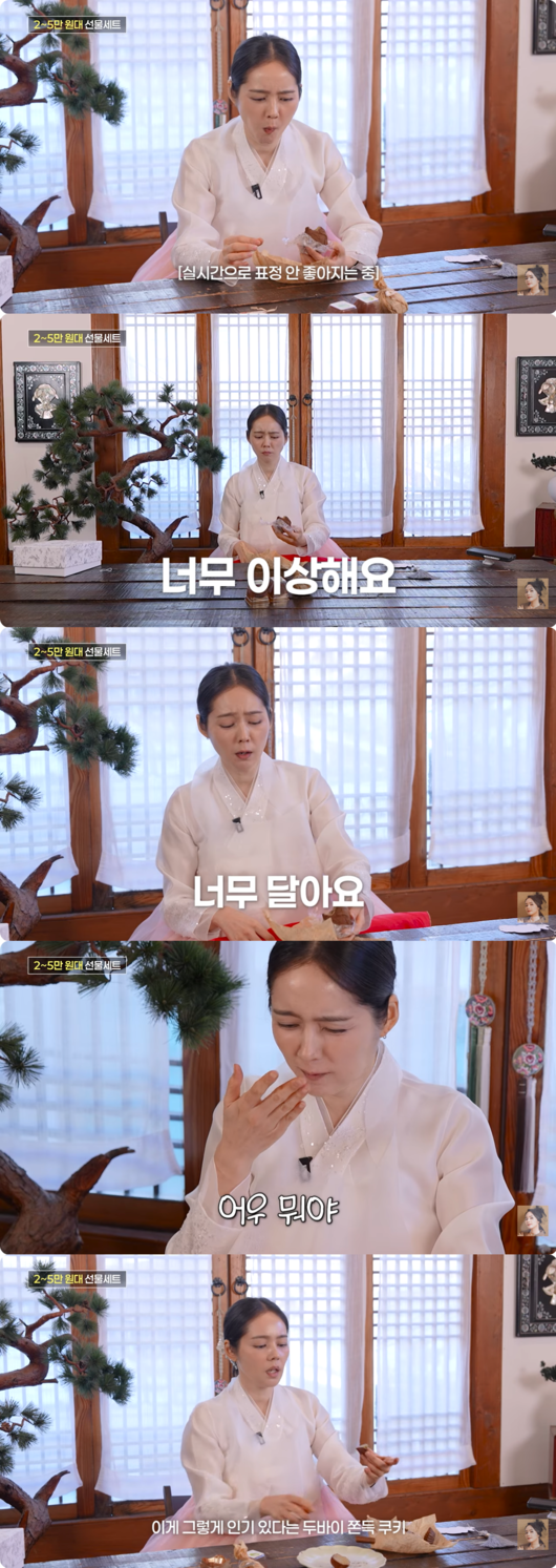 [OSEN=박근희 기자] 배우 한가인이 최근 유행하는 두바이 간식을 먹고 혹독한 시식평을 남겼다.