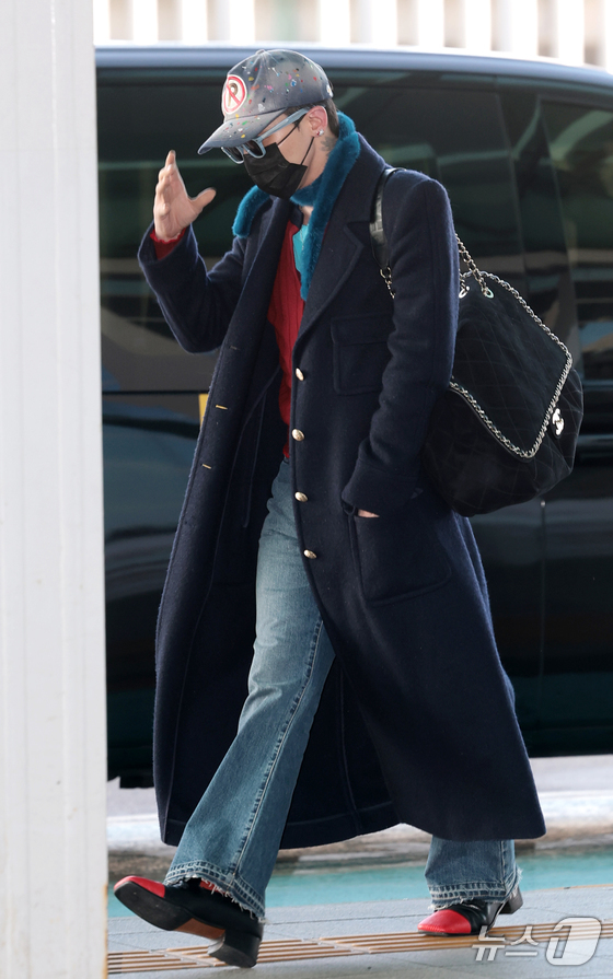 이날 지드래곤은 청바지에 네이비 컬러 코트를 매치한 감각적인 공항 패션으로 시선을 사로잡았다. 여기에 고가의 샤넬 백을 포인트 아이템으로 더하며 특유의 패션 아이콘다운 면모를 드러냈다.