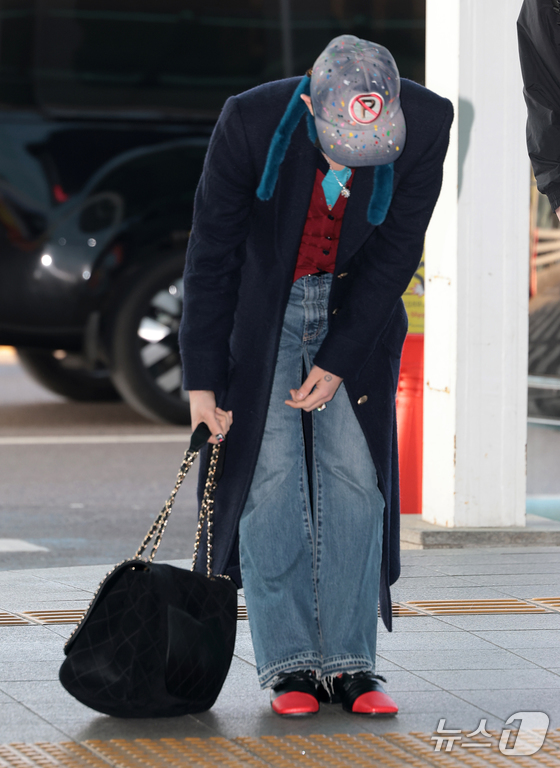 빅뱅 지드래곤이 30일 해외 일정을 위해 인천공항을 통해 말레이시아로 출국하며 90도 인사를 하고 있다. © News1 권현진 기자