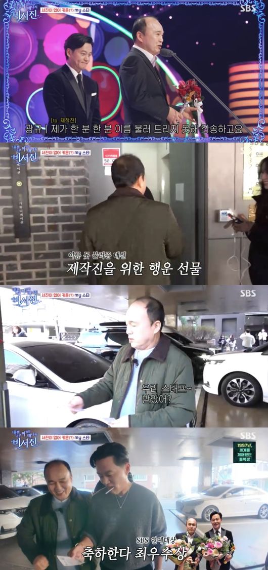이날 오프닝에서 김광규는 “최우수상을 또”라며 미소와 함께 제작진에게 복권을 선물했다. 수상 당시, 스태프들의 이름을 언급하지 못한 것을 대신해 특별한 선물을 준비한 것.