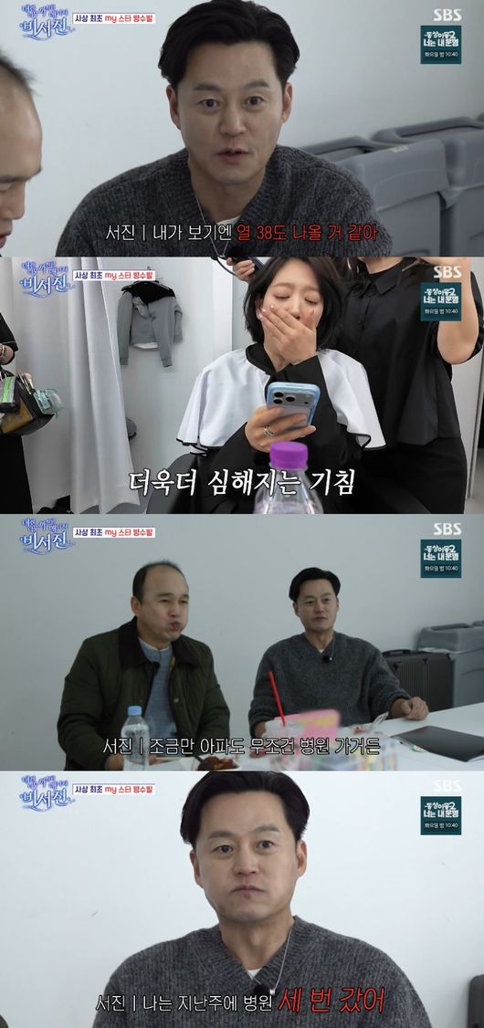 특히 이서진은 “저렇게 아픈 게 어떤 기분인지 아니까 그래서 내가 빨리 병원 가자고 하는 것. 나는 무조건 병원 가는 사람이다. 나는 지난주에 병원 세 번 갔다. 조금 아파도 간다. 그러니까 감기가 금방 낫는다”라고 해 놀라움을 안겼다.