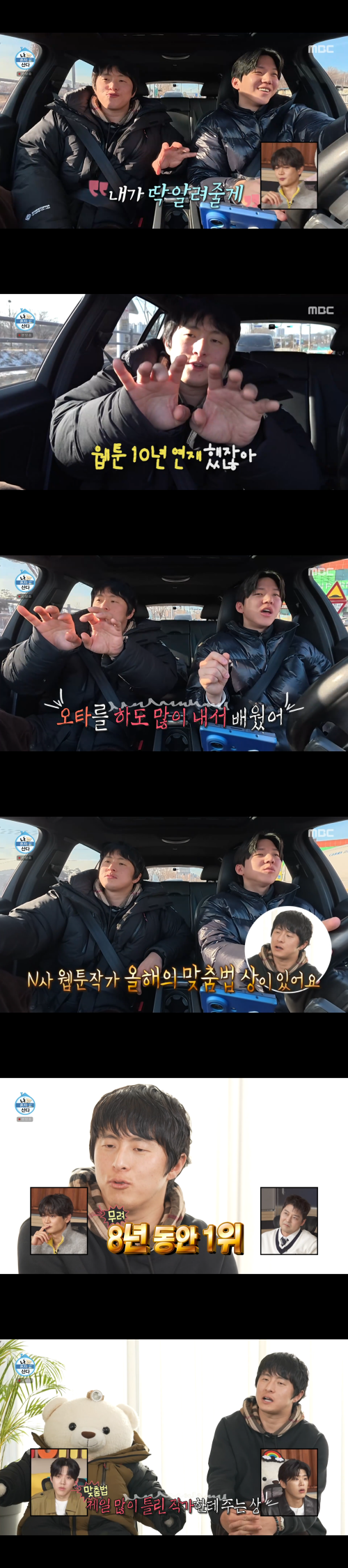 이어 기안84는 예상치 못한 고백으로 스튜디오를 뒤집었다. 그는 “네이버 웹툰작가 ‘올해의 맞춤법 상’이라는 게 있다. 내가 그걸 8년 동안 한 번도 안 놓쳤다. 한 해 동안 맞춤법 제일 많이 틀린 작가에게 주는 상이다”라고 밝혀 출연진을 포복절도하게 만들었다.