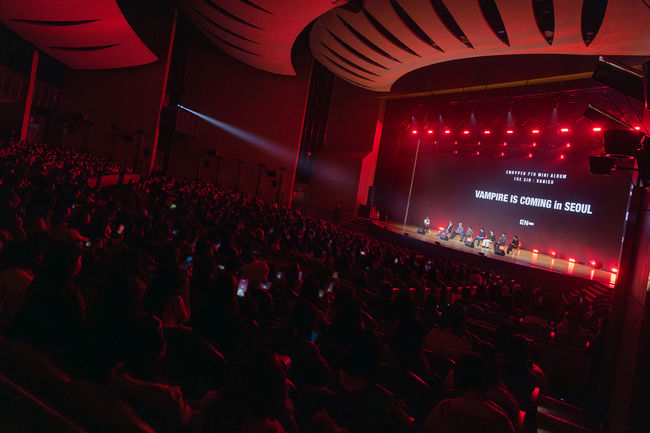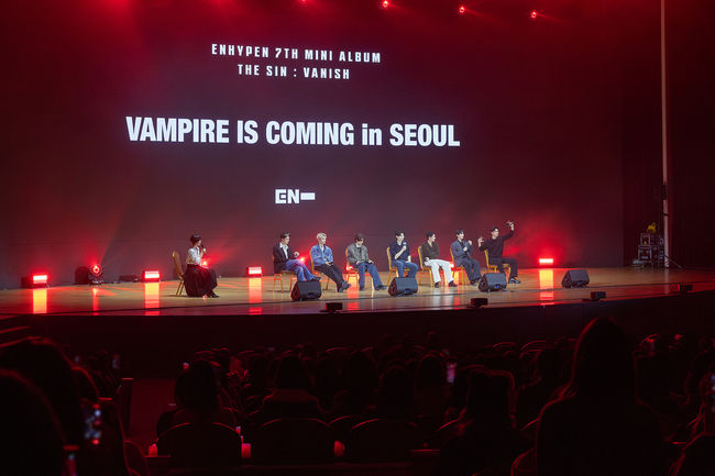 엔하이픈(정원, 희승, 제이, 제이크, 성훈, 선우, 니키)은 지난 30일 서울 강남구 코엑스 오디토리움에서 글로벌 상영회 ‘VAMPIRE IS COMING in SEOUL’을 열고 약 1000명의 엔진(ENGENE.팬덤명)과 만났다.