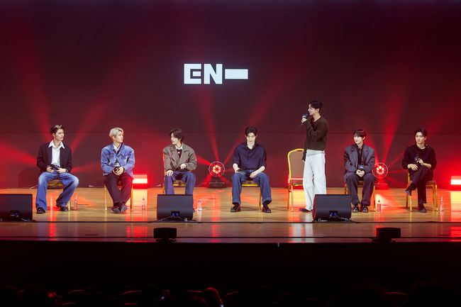 이날 엔하이픈은 ‘전 세계를 도피하다 잠시 이곳에 숨어든 뱀파이어’라는 설정으로 무대에 등장해 팬들의 몰입도를 높였다. 멤버들은 챕터 영상의 주요 장면에 담긴 상징과 해석을 짚어주고, 완성도를 높이기 위한 제작 비하인드를 들려주며 풍부한 이야기를 풀어냈다. 배우 박정민의 축하 메시지, 수록곡 ‘Stealer’ 스페셜 영상 등 깜짝 선물도 더해져 현장은 뜨거운 열기로 가득 찼다.