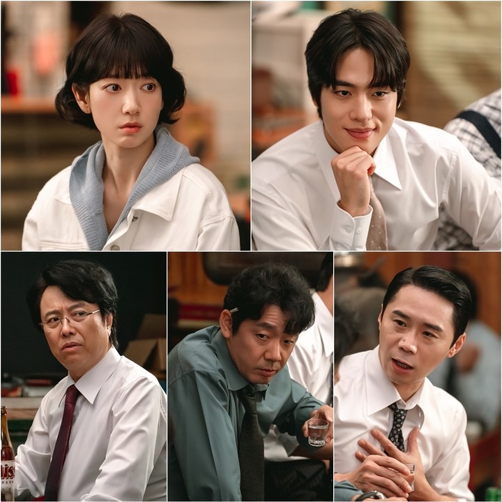 공개된 스틸에는 ‘예삐’ 후보로 지목된 소경동(서현철) 부장, 방진목(김도현) 과장, 차중일(임철수) 부장의 회동이 담겼다. 술잔을 기울이는 한민증권 ‘소.방.차’ 3인방 옆에, 홍금보를 비롯해 알벗 오(조한결) 본부장과 이용기(장도하) 과장까지 위기관리본부 팀원들도 동석해 수상한 기류를 형성하고 있다.