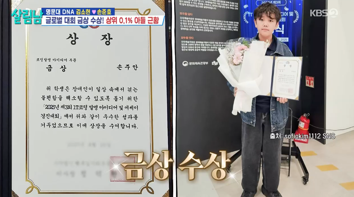 이날 김소현의 아들 주안이도 화제 선상에 올랐다. 아들은 중학교 2학년으로, 글로벌 대회에서 금상을 수상할 정도로 영재로 불린다고.