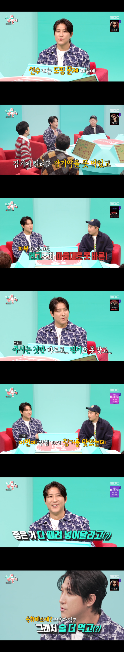 은퇴 후 가장 좋은 점으로는 “선수 때는 감기 걸려도 약을 마음대로 못 먹었고, 숙취해소제도 못 먹었다”며 “지금은 그 모든 걸 할 수 있다는 것”이라고 말해 유쾌함을 더했다. 운동 선수 시절에는 도핑 규정 때문에 간단한 약조차 제한됐던 경험도 있다고 덧붙였다.