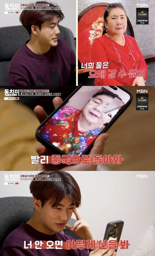 두 사람은 사이사이 알콩달콩한 모습을 보여 모두를 놀라게 했다. 그때 진화의 휴대폰에 어머니의 전화가 걸려왔다. 자리를 피해 전화를 받는 진화를 본 함소원은 “전화를 내려가서 받는 게 조금 이상했다”라며 고민에 빠진 표정을 지었다. 결국 함소원은 진화가 있는 방을 찾아갔다. 함소원은 밝은 목소리로 어머니에게 새해 인사를 전했다. 그럼에도 어머니는 냉랭한 목소리로 답했다.