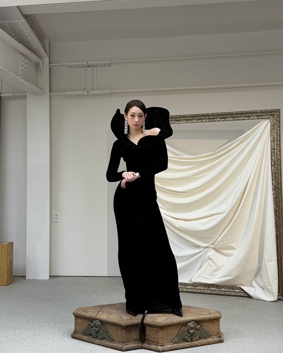 사진 속 애니는 독특한 핏의 블랙 드레스와 화려한 액세서리를 착용한 뒤 포즈를 취하고 있다. 우아하면서도 고혹적인 비주얼이 시선을 사로잡는다.