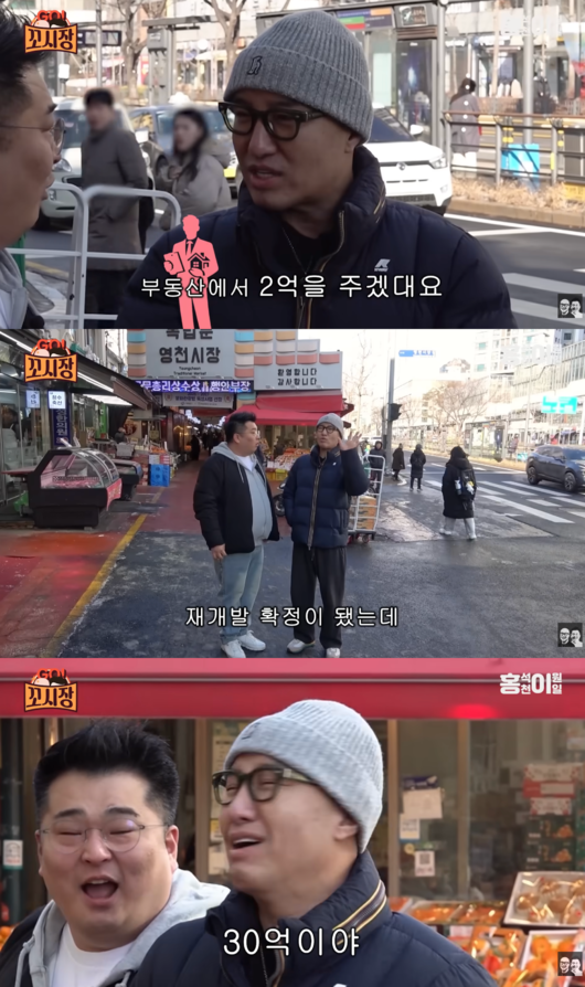 홍석천은 “일주일 후에 다른 부동산에서 전화가 왔다. 5억 5천을 주겠다고. 그 부동산이 나를 속인 거다. 재개발 확정이 됐는데 그 얘기를 나한테 안 하고”라며 억울해 했다.