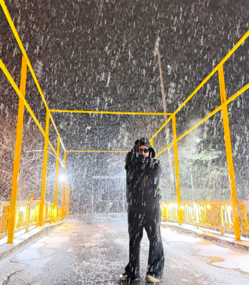 공개된 사진 속 풍자는 눈이 쏟아지는 거리에서 포즈를 취하고 있는 모습이 담겼다. 머리부터 발끝까지 올블랙룩을 선보인 그는 대비되는 색으로 화보 같은 자태를 뽐냈다.