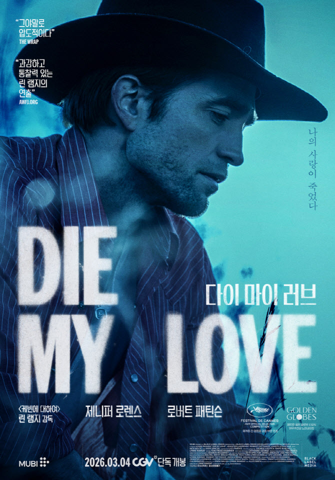 ‘다이 마이 러브’는 영화 ‘케빈에 대하여’(2012)로 전 세계 영화 팬들을 열광하게 만든 린 램지 감독의 신작으로 일찍이 제78회 칸영화제 경쟁 부문에 진출하며 화제를 모은 작품이다. 파격적인 연출과 캐릭터를 날카롭게 파고드는 해석이 돋보이는 작품을 선보인 린 램지 감독과 제니퍼 로렌스, 로버트 패틴슨의 만남으로 기대를 모은다. 이번 작품을 통해 제니퍼 로렌스는 제83회 골든 글로브 시상식 여우주연상에 노미네이트 되었고, 그의 연기를 향해 외신은 “제니퍼 로렌스가 쌓아 올린 커리어 중 최고의 연기”(르노 뉴스 앤 리뷰), “제니퍼 로렌스가 보여준 가장 현실적이고, 대담하고, 설득력 있는 연기. ‘다이 마이 러브’를 미친 걸작으로 만들 정도!”(더 무비 크리켓), “제니퍼 로렌스의 광란의 쇼케이스!”(데일리 텔레그래프)라며 극찬을 보내 궁금증을 더한다. 또한 영화 ‘테넷’(2020), ‘라이트하우스’(2019), ‘더 배트맨’(2022), ‘미키 17’(2025) 등 다채로운 작품을 통해 연기의 스펙트럼을 확장한 로버트 패틴슨 역시 전 세계 영화 팬들을 또 한 번 사로잡을 것으로 기대된다.