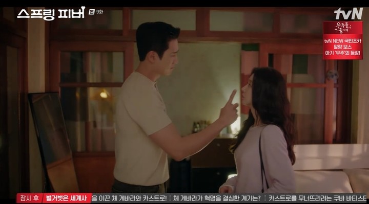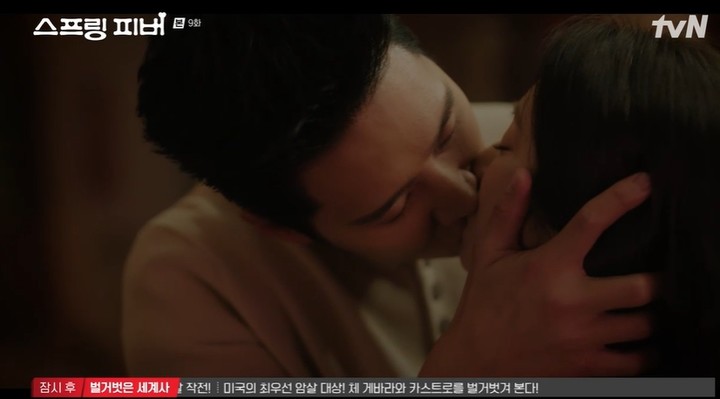 2일 tvN '스프링 피버' 9화에서는 선재규와 윤봄이 강제로 공개 연애를 하게 되는 장면이 전파를 탔다.