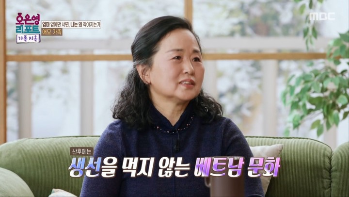 엄마는 "며느리가 고기를 좋아하지 않는다고 해서 북어를 넣은 미역국을 끓여줬다. 그런데 며느리가 미역만 달라고 해서 서운했다"며 "나중에 알고 보니 베트남에서는 산후에 생선을 먹지 않는 문화가 있더라. 의사소통의 문제였지만 서운해서 육아를 안도와줬었다"고 설명했다.