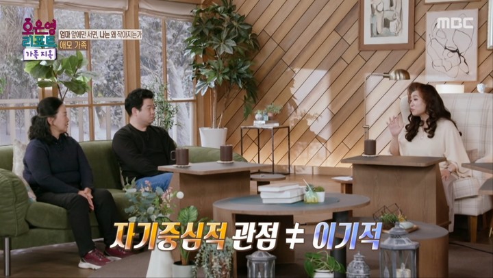 그러면서 "어머님의 경험에 의해서만 판단을 하시기 때문에 생각이 다른 사람과 계속 갈등이 발생하는 것"이라고 "이게 바뀌지 않으면 갈등은 계속될 것"이라고 했다.