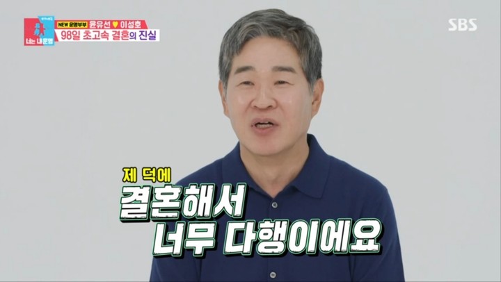 (MHN 박선하 기자) 배우 윤유선의 법조인 남편 이성호가 "내가 아내와 결혼해 준 것"이라는 주장으로 웃음을 안겼다.