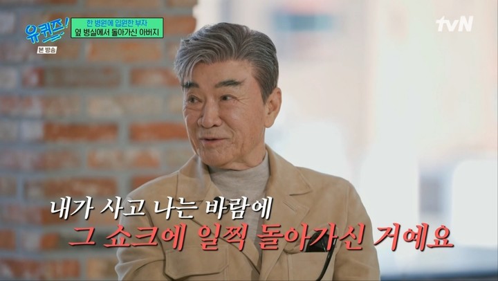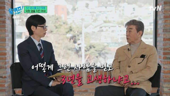 아내를 향한 애정은 지금도 변함없다. 일흔이 넘은 지금도 그는 아내를 '이쁜이'라고 부른다고. 그는 "다음 세상에 아내를 만날 수 없으면 사람이 아닌 물고기 같은 걸로 태어날 것"이라며 "아내를 못 만나면 누가 책임져주냐"고 깊은 애정을 드러났다.
