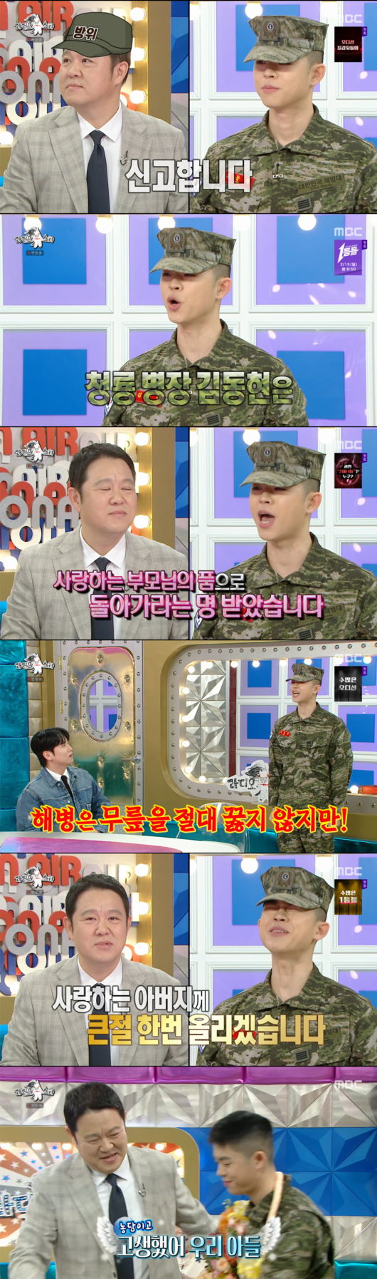 이날 김구라는 과거 아들이 해병대에 지원한다고 했을 때 "웬 주접이냐"고 독설을 날렸던 일화를 공개하기도 했다. 하지만 이제는 "자식들의 판단은 언제나 존중해 달라"는 훈훈한 결말을 맺으며 아들의 귀환을 진심으로 축하했다.