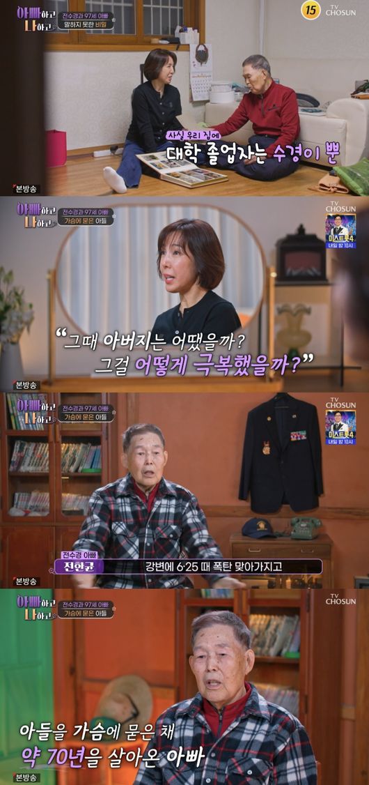 이날 전수경은 아버지와 외식 후 집에 돌아와 앨범을 꺼냈다. 앨범 속 사진을 함께 보던 두 사람은 전수경의 어린시절부터 학창시절, 대학교 졸업 등 추억을 회상했다.