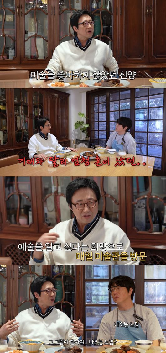이후 박신양은 20대 중후반, 연기를 배우기 위해 러시아 유학 생활 중 매일 밥 한끼를 굶고서라도 미술관, 박물관을 찾아 다녔다고. 그리고 작은 미술관에서 생전 처음으로 그림으로 빨려 들어가는 것 같은 느낌을 받았다며 “그날부터 완전히 달라졌다”며 미술의 세계로 뛰어들게 됐다고 밝혔다.