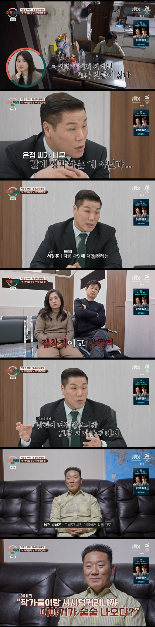 이를 본 서장훈은 입을 쩍 벌리며 “작가랑 피디도 의심하는 거냐”고 황당해했다. 서장훈은 세상 사람들 모두를 다 의심할 기세인 아내의 극심한 의부증 수위에 혀를 내둘렀다.