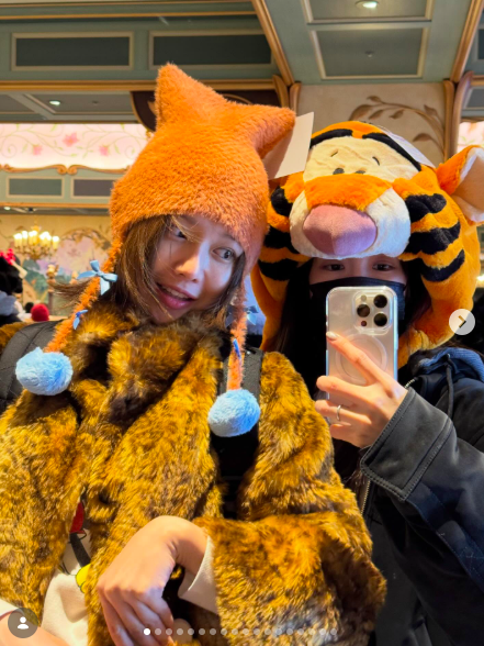 공개된 사진에는 소녀시대 수영과 티파니가 디즈니랜드를 찾아 즐기는 모습이 담겼다. 두 사람은 귀여운 털모자를 착용한 채 다정히 거울 셀카를 찍거나 포토존 곳곳에서 포즈를 취했다.