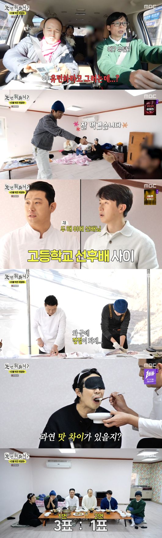 두 음식을 한 숟가락 씩 맛본 멤버들은 “차이점이 있는데 헷갈린다. 다 맛있다”고 어려워했고, 1번이 3표, 2번이 1표를 받았다. 1번 음식의 주인공은 주우재였고, 반전 결과에 모두가 놀라워했다. 유일하게 2번틀 택한 허경환은 “내가 먹어왔던 식감이 있다”고 설명했다.