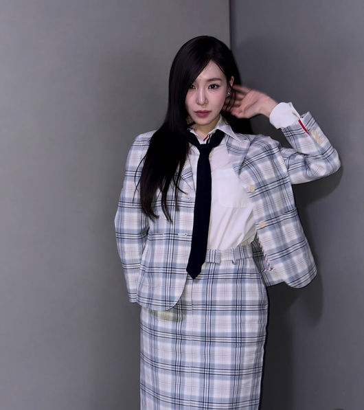 지난 5일 티파니는 자신의 소셜 계정에 여러 장의 사진을 공개했다. 밝은 체크 무늬 투피스에 톰 브라운 셔츠와 시니컬한 타이를 두른 티파니는 특유의 사랑스러운 미소와 함께 페미닌한 스타일을 사랑스럽게 소화해냈다.